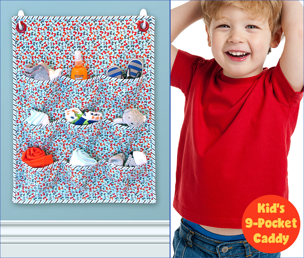 Little socks, little shirts, little shoes. Kid accoutrements have a way of turning into a meandering trail across the floor, making a mess and making it hard to find what you need when it’s time to get dressed. Our closet door caddy has nine 6” pockets to hold lots of little stuff. We can’t guarantee that some items won’t still escape, but we can promise super-cute organization that makes it more fun to tidy up.
