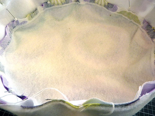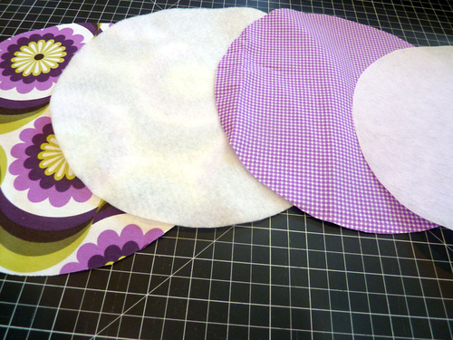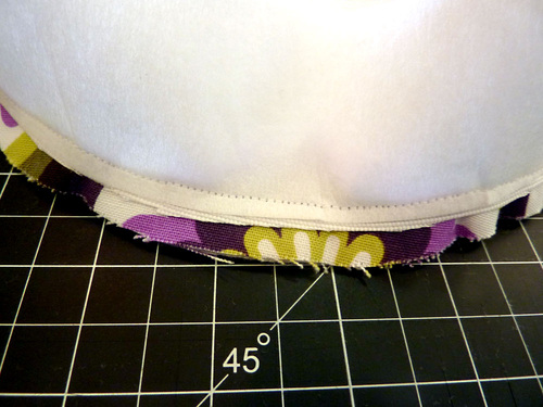 - Following manufacturer’s instructions, fuse the interfacing to the wrong side of the lining base circle.