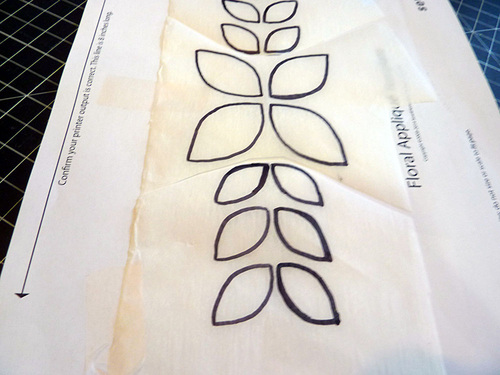 - Trace the appliqué design(s) directly onto the paper side of the fusible web.
