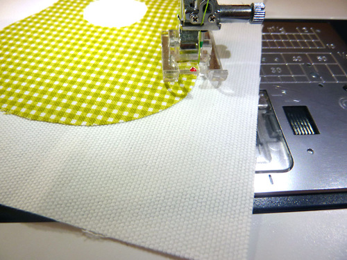 - Using a ½” seam allowance, stitch all the way around the circle.