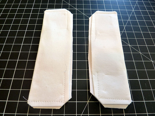 - Find the two handle pieces and the two matching pieces of medium weight fusible interfacing.