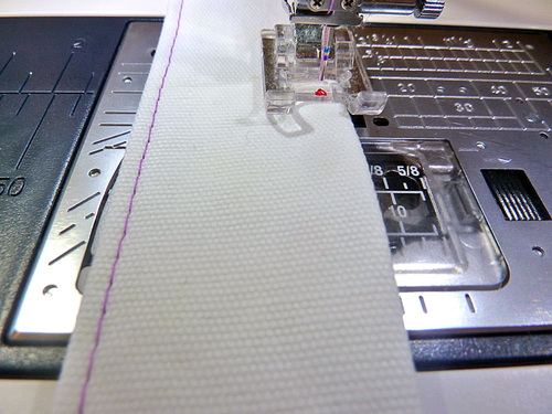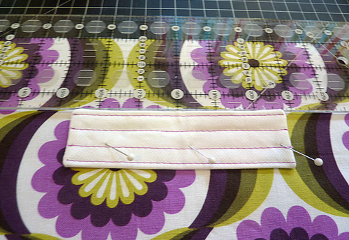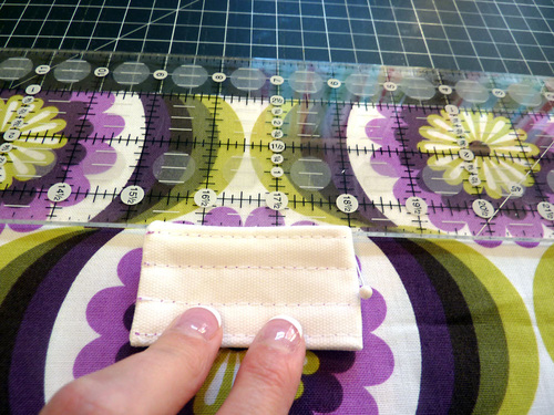 - Then add two additional lines of parallel stitching through the center of the handle, one ⅜” from the top edgestitching and the other ⅜” from the bottom edgestitching.