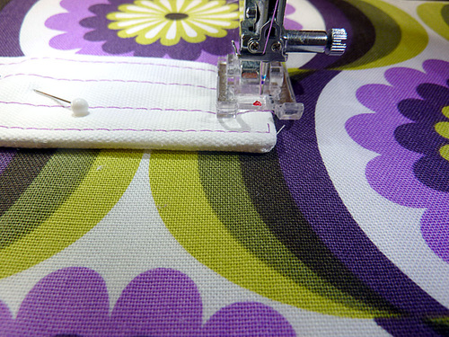 - Slightly lengthen your stitch length and topstitch around the bottom edge within the accent panel.