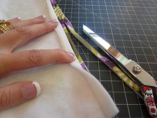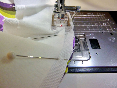 - Using a ½” seam allowance, stitch all around. Grade the seam allowance.