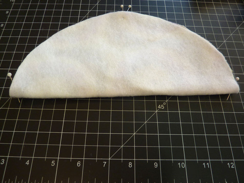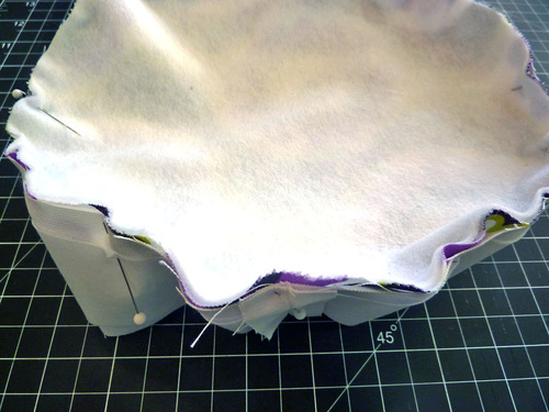 - Set the base into the loop so the two pieces are right sides together. Align the quadrant pins of the panel loop with the quadrant pins of the base circle. Pin at these points first, then fill in around the circle.