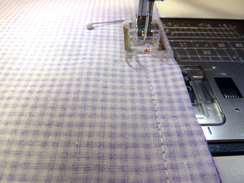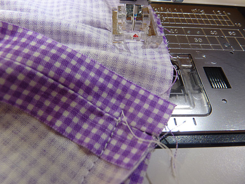 - Slightly lengthen your stitch and topstitch along each seam within the body panel.