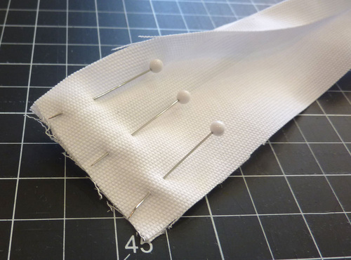- Open up the fold in order to align the 2″ ends. Pin in place.