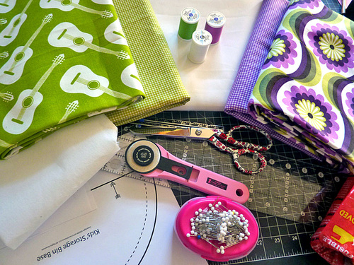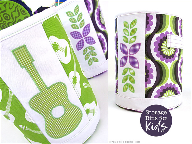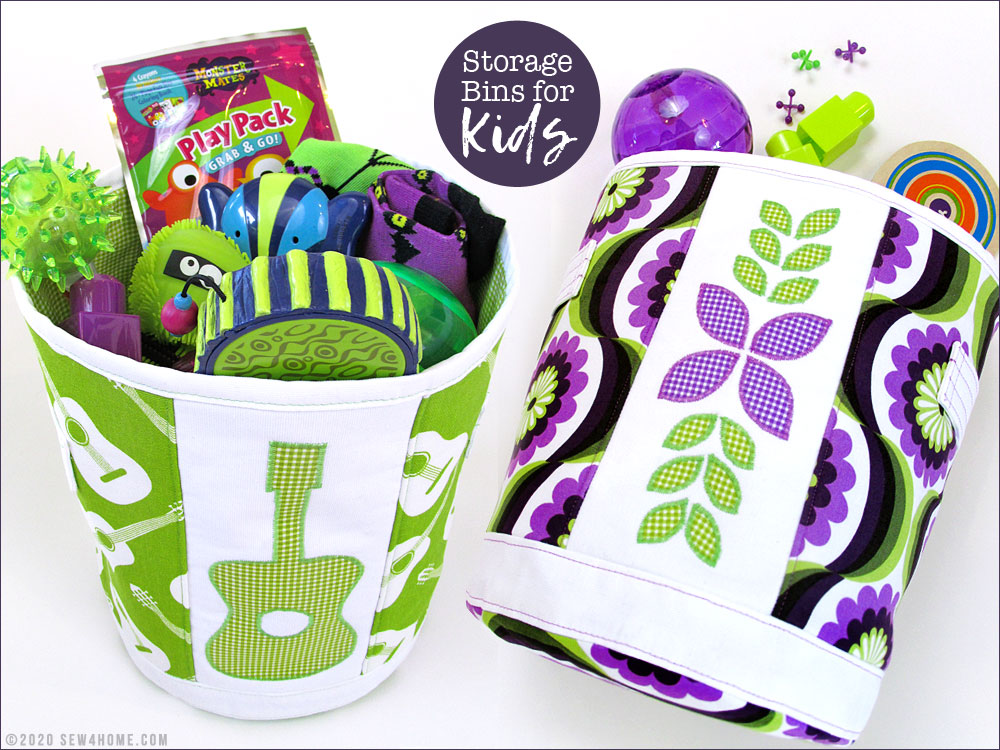 Mary Poppins had a spoonful of sugar to work her magic on room organization. You have your sewing machine and this project for super cute storage bins. Our round fabric baskets make picking up and putting away much more fun and colorful. The foundation fabric is a classic canvas in a solid color.The accent fabrics for the exteriors, appliqués, and linings are a mixture of décor weight and quilting weight cottons, which means the selection available to match your own decorating themes is huge.