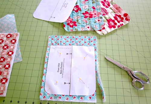 - Use the Mitt Back (Pocket) pattern to also cut a lining piece from the remaining 8″ x 10″ back fabric piece.