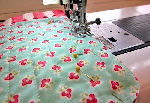 - As above, channel quilt these layers, matching the width of the quilting on your front piece (in our case, approximately ¾” apart). We used our quilting bar on this piece to keep our lines consistent.