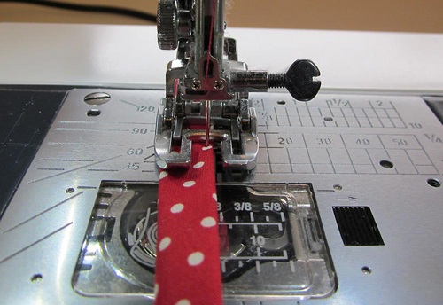 - Edgestitch each 8″ length of bias tape closed.