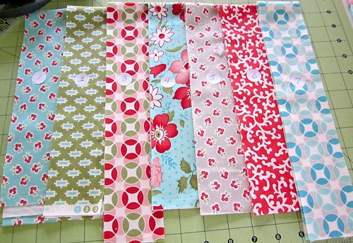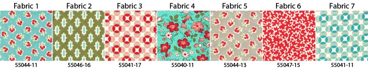 We originally used fabric from the Vintage Modern collection by Bonnie & Camille for Moda Fabrics, an older collection that is no longer readily available. But there are always lots of new quilting cotton collections from which to choose. If you are interested in using pre-cuts, we believe our friends at Fat Quarter Shop have the very best selection. We also provide yardage calculations with and without pre-cuts in the mix.