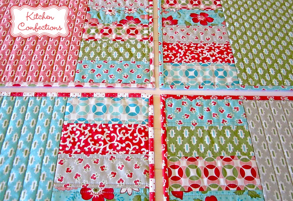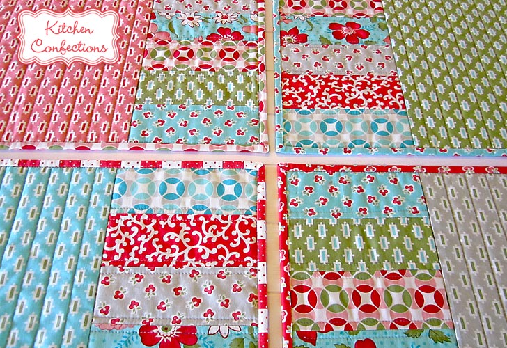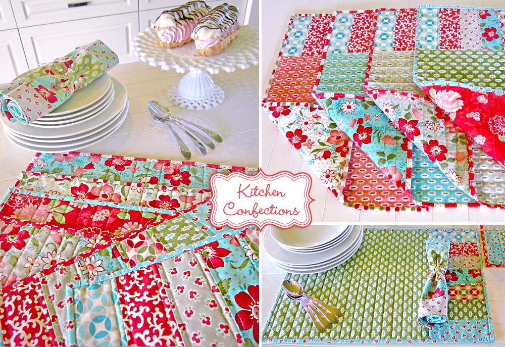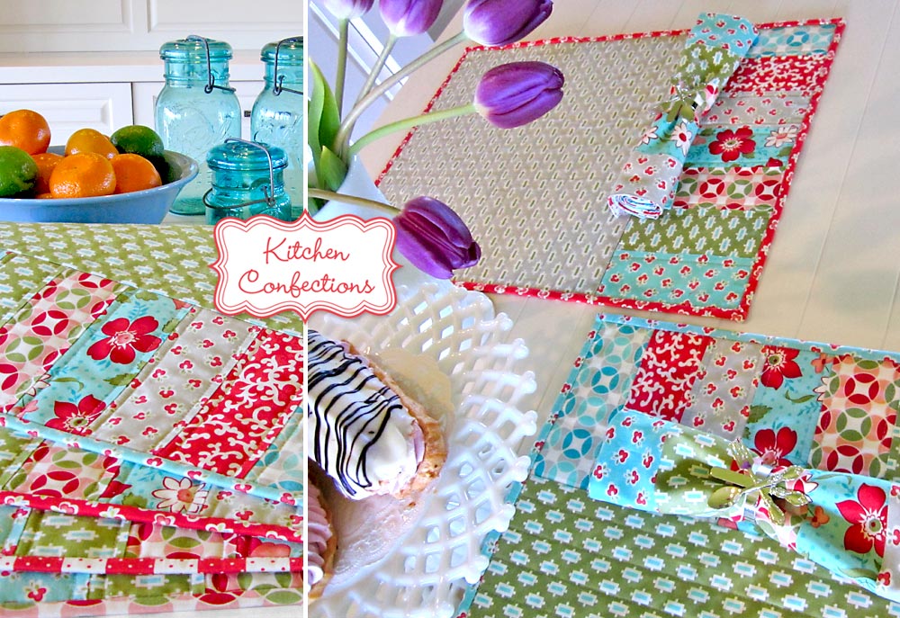 If you love these placemats, you’ll want to check out the other items in our Kitchen Confection Series: coordinating napkins, a small table runner, oven mitts, and an adorable apron. To round it all out, click to download an adorable set of matching recipe cards and gift tags. You’ll be set to brighten your kitchen from top to bottom.