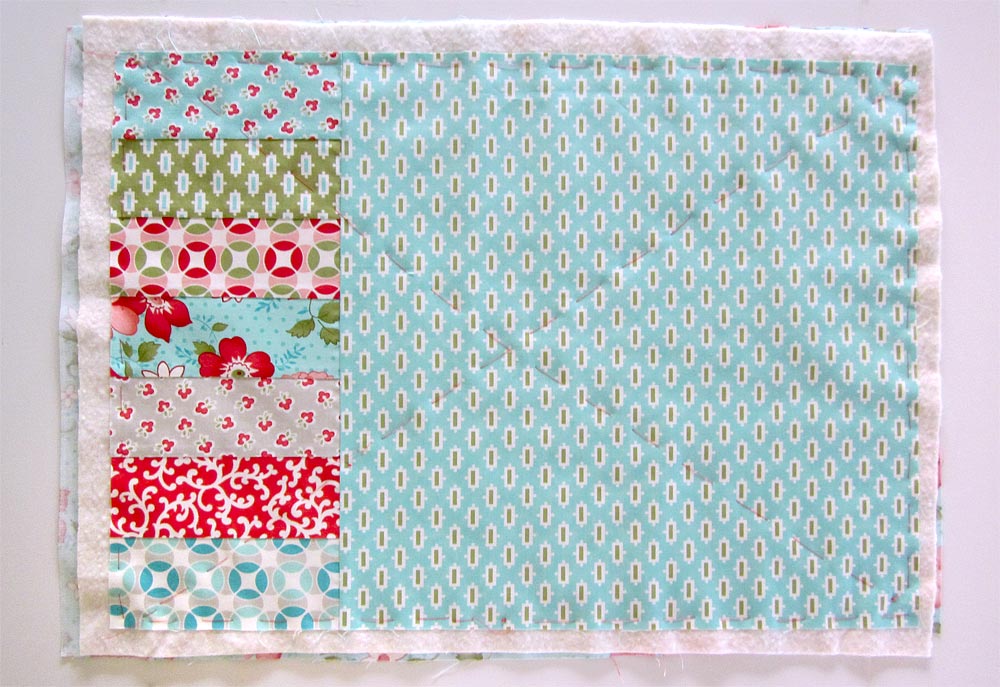 NOTE: You can sew the strata to the left or right. We chose to place it to the right since that usually where flatware would be placed.