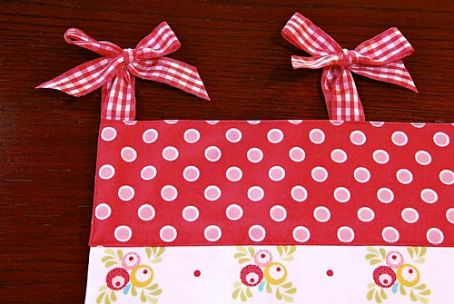 - We found it easier to tie all the ribbon ties into matching bows first, and then slip the panels onto the curtain rod, adjusting as needed once in place.