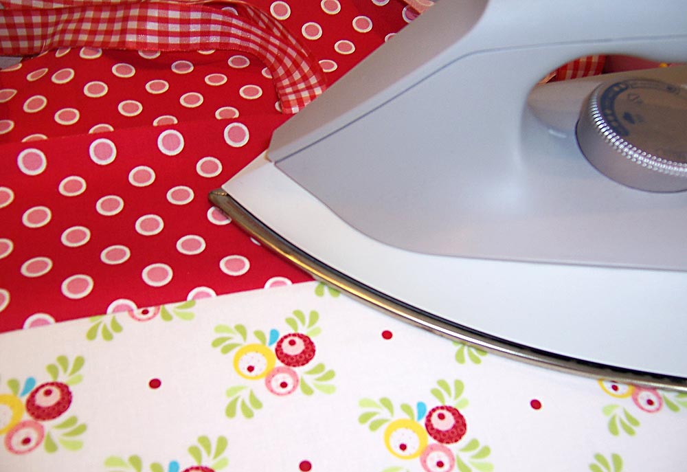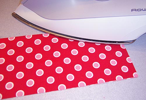 - The crease marks the center line of your strip and the line on which you will place and stitch the ribbon ties.
