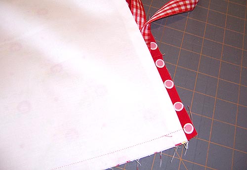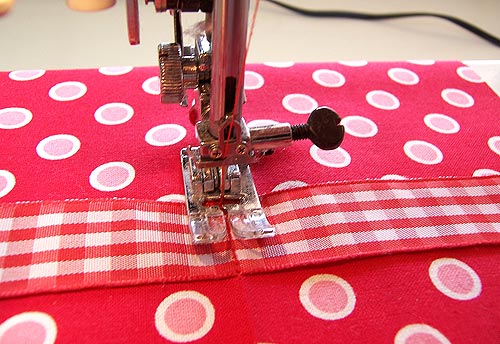 - Fold the accent strip in half, right sides together, and pin in place along each end.