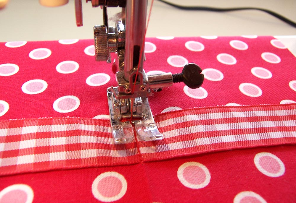 - Stitch straight across each ribbon, keeping your seam right along the center crease. We recommend stitching back and forth several times to create a nice, strong tie.