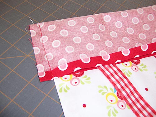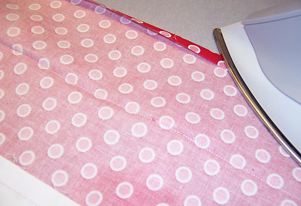 - With the accent strip still opened flat, press the seam allowance away from the curtain panel towards the accent strip.