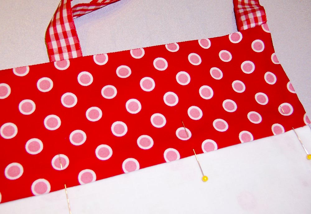 - Match up the two main fabric panels with the two lining fabric panels. Pin each set right sides together, aligning all the raw edges.