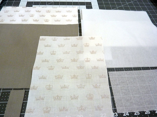 - Find the two exterior panels and the two large rectangles of lightweight fusible interfacing.