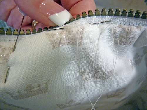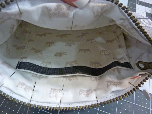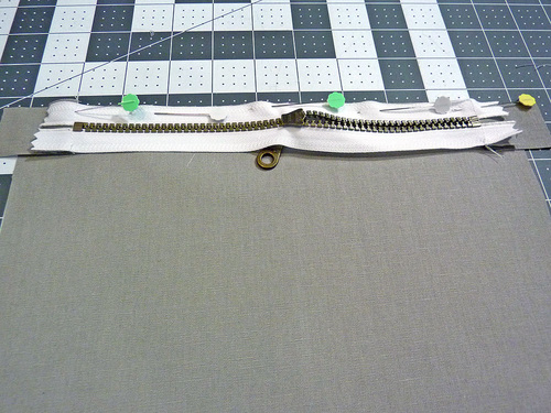 - Pin in place along the top edge of the zipper tape.