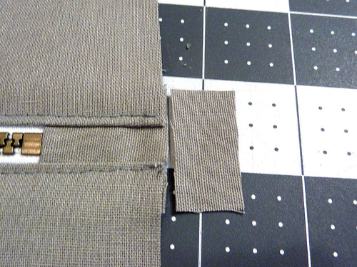 - Trim away any excess zipper tab extending beyond the edge of the fabric panel at either side.