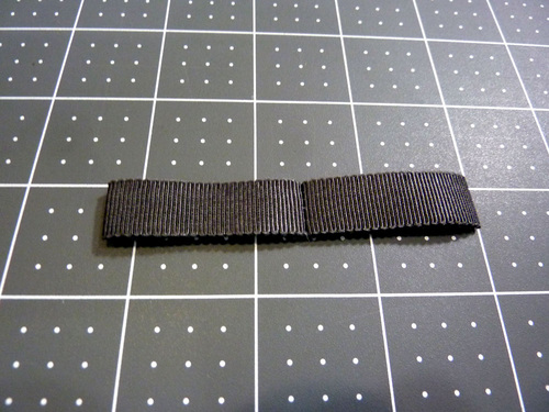 - Fold the 6” ribbon in half so it is now 3”, aligning the raw ends. Stitch the ends together, using a ¼” seam allowance, to form a loop. Turn the loop right side out and center the seam at the back.
