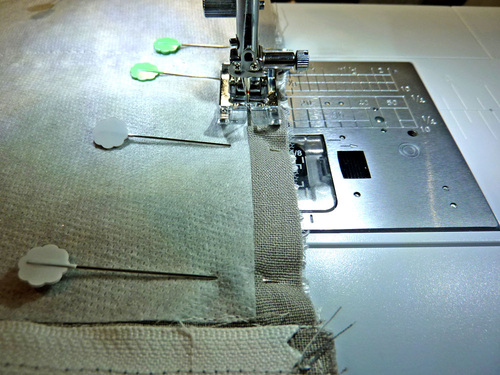 - Pin the pocket in place along both sides and across the bottom.