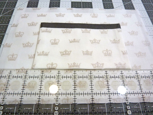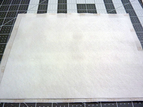 - Center the interfacing on the wrong side of each exterior panel so there is ½” of fabric showing beyond the interfacing on all sides.