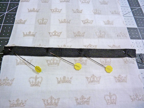 - Pin the ribbon in place.