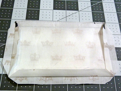 - Fold down the top raw edge of the lining ½” all around. Press in place.