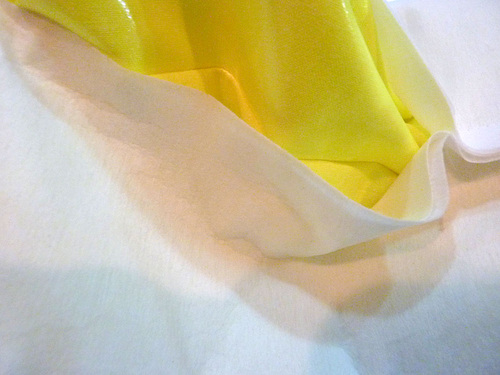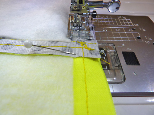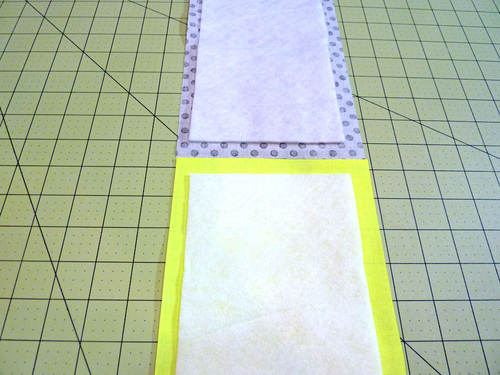 - Stitch together, using a ½” seam allowance. Finger press the seam allowance towards bottom panel. Topstitch along the seam within the Yellow panel, keeping your topstitching ¼” from the original seam.