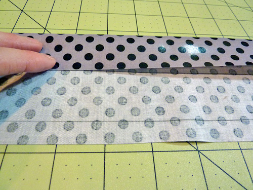- Fold over the right side so its raw edge aligns with the second drawn line (not the center line). Finger press in place or press with a pressing cloth.