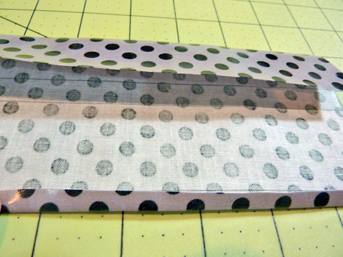 - Fold this folded left edge to the center of the strap, overlapping the raw edge of the first fold – as if you were folding a letter to mail (remember when you used to mail letters?!). Finger press in place. Clip or pin in place. The strap should now measure 2″ in width.