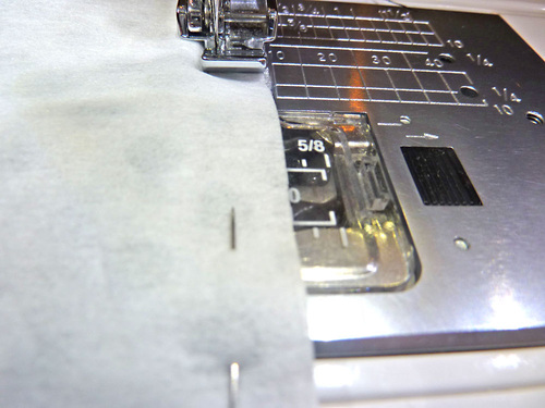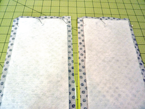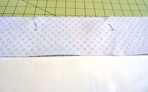 - Place the two lining base panels right sides together, carefully aligning the horizontal facing seams. Pin along one 16½” side.