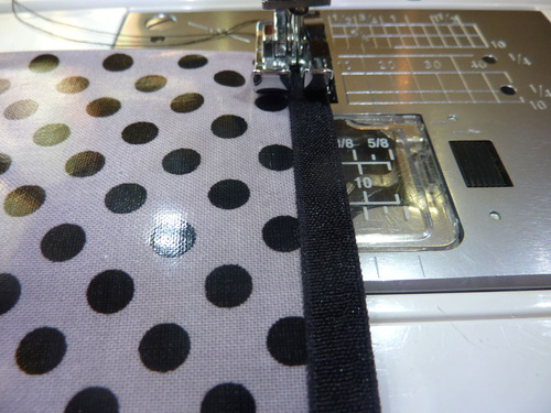 - Stitch down the elastic across the top of the panel, using a ¼” seam allowance. This seam adds a slight gather to the top of the bottle pocket.