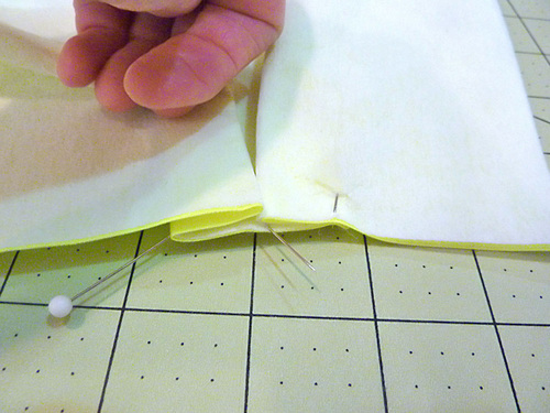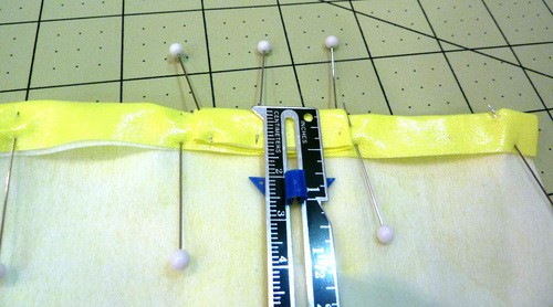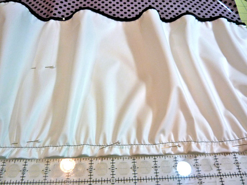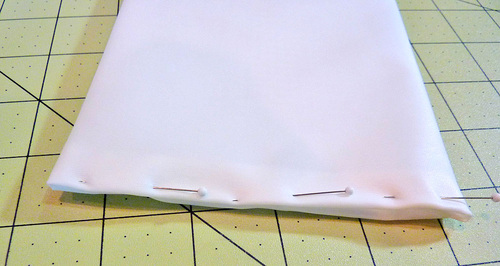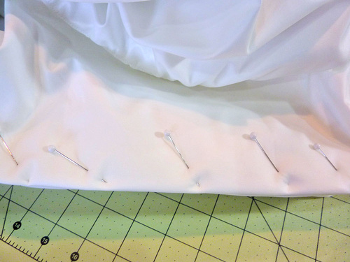 - Fold back the pleated bottom ½” to create a finished edge. Pin in place.