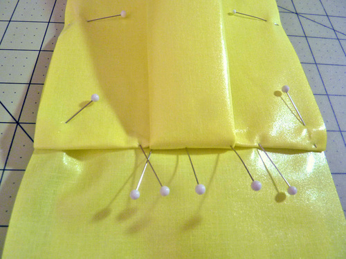 - Pin the pleat in place.