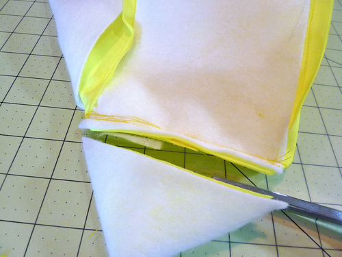 - Clip the corners, turn the sleeve right side out, and press flat, using a pressing cloth.