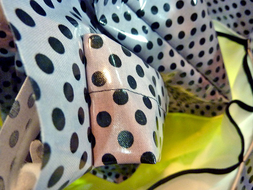Cotton laminates are showing up from more and more manufacturers, which is great news when it comes to picking your favorite color combos. Our original sample featured sunshine yellow against a classic dot.