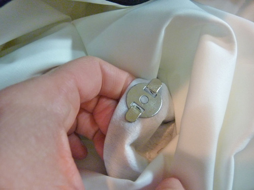 - You can use the opening in the bottom of the lining (the opening you used to turn everything right side out) to reach up inside and affix the back of each snap.