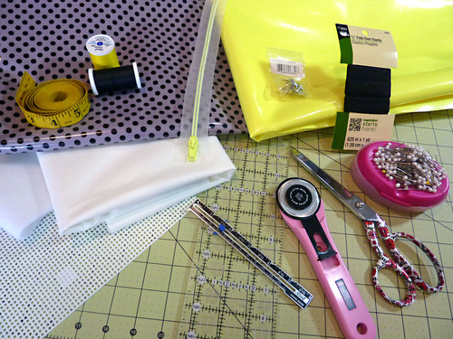 - ONE 7″ zipper; we used a decorative 9″ neon zipper (purchased locally), which we cut down to fit