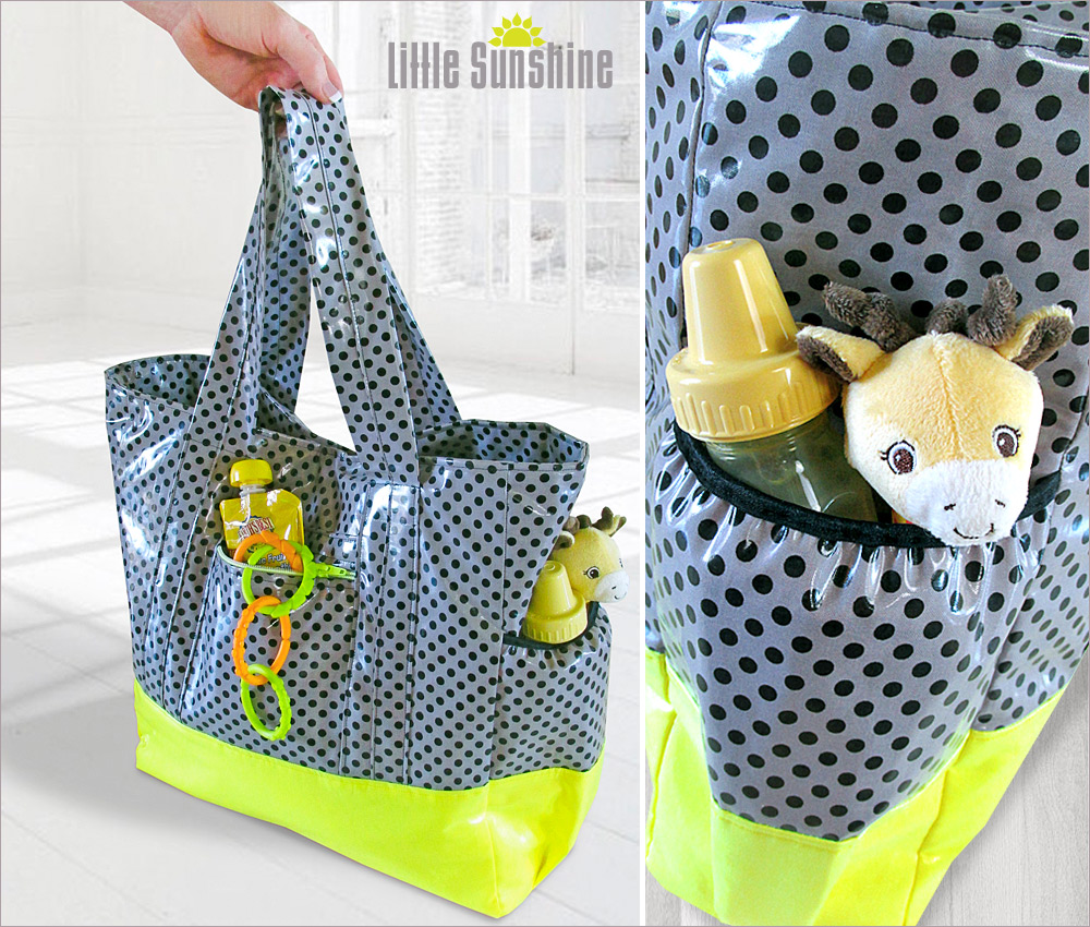 Tiny hands, teeny toes… babies are adorable little packages, but what they lack in size, they more than make up for in volume. Leaving the house with a baby can feel like provisioning for an Arctic adventure. You need a generous diaper bag to handle the task. Our Little Sunshine Tote features wipe-clean cotton laminate on the outside and a PUL lining. With 5″ boxed corners, this tote opens wide, and there are plenty of pockets to store all the necessities: two small and two large pockets on the inside plus a handy side bottle pocket and zippered pouch on the outside. It’s lightweight but hard-working.