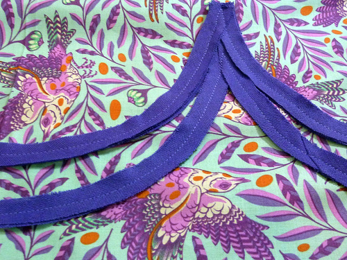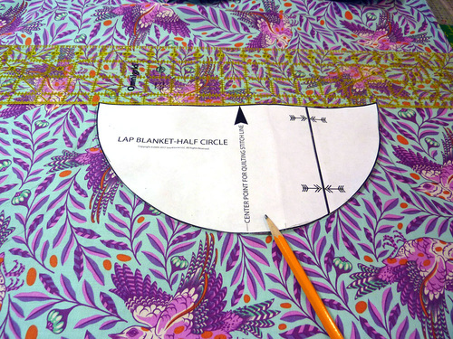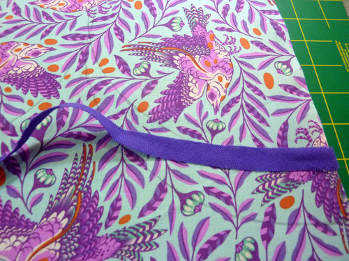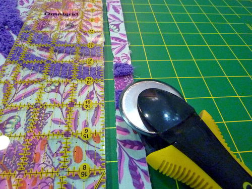 This type of trim Is available In a number of colors. We originally chose a rich royal purple for our lap blanket, which was the perfect compliment to the color palette of our front and back quilting cotton panels.