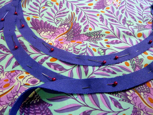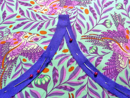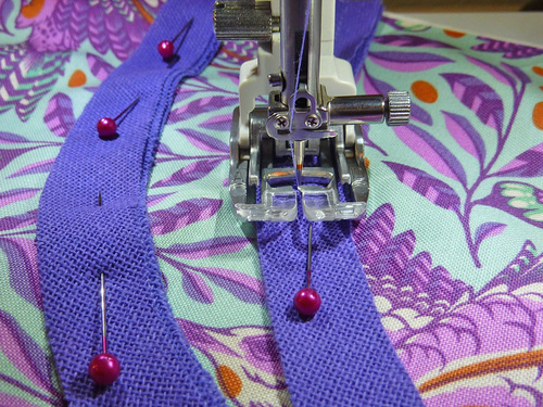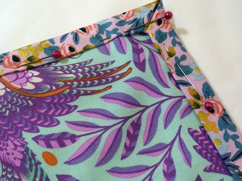 - This means you are wrapping the backing over the top panel, creating a self-binding. Pin in place.