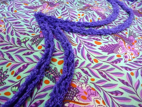 - When all the chenille trim is stitched in place, toss the panel in the washing machine. Wash in cool water with delicate soap on a standard cycle.
