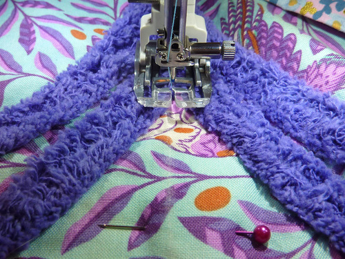 - Thread the machine with thread to best match the chenille trim in the top and bobbin. Slightly lengthen the stitch.
