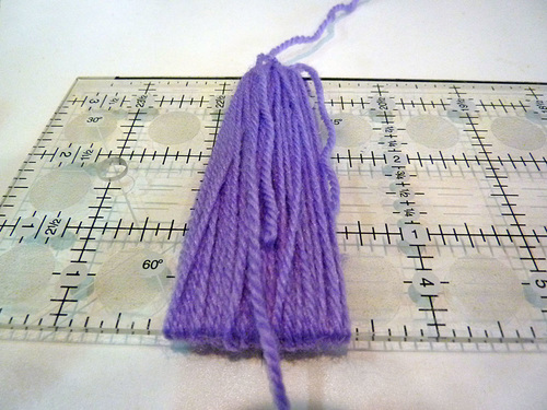 - Make the four optional tassels for the corners. We used our clear ruler, which was 3.5”, as a wrapping template.