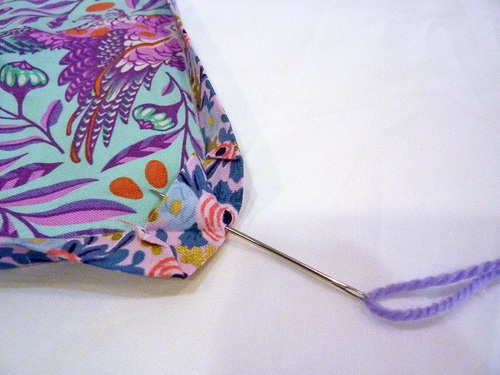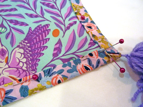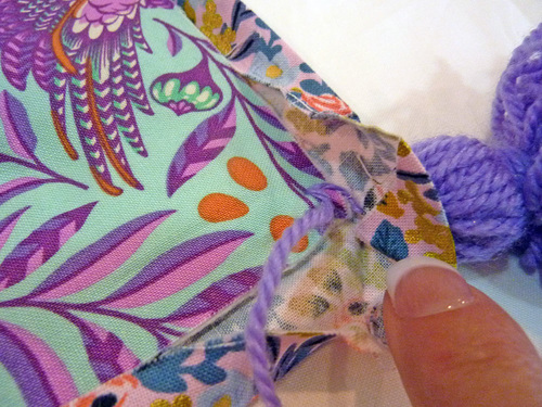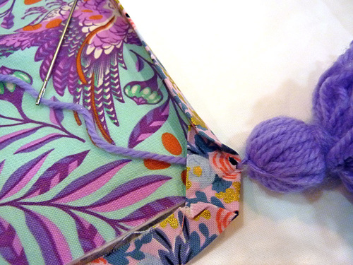 - We also stitched diagonally into each corner to both seal the corner and further anchor the tassels in place.